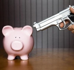 extortion - The practice of obtaining something, especially money, through force or threats.