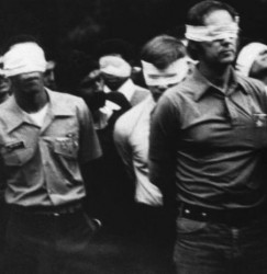 hostage - A person who is captured and held prisoner and is threatened with injury if a demand is not met