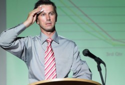 quaver - To shake or tremble one's voice while speaking, typically because of nervousness or emotion