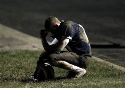 succumb - To not be able to resist and finally to give into pressure, temptation, or some other negative force.