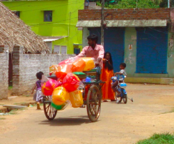 hawker - A person who travels around selling goods, typically advertising them by shouting