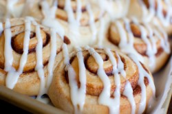 glaze - Overlay or cover (food, fabric, etc.) with a smooth, shiny coating or finish