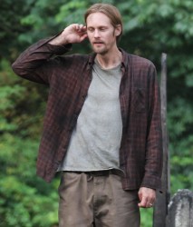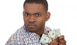 dribble - (of a liquid) fall slowly in drops or a thin stream