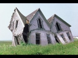 cockeyed - Crooked or askew; not level; or an idea that is crazy or foolish.