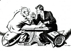brinkmanship - The art or practice of pursuing a dangerous policy to the limits of safety before stopping, typically in politics