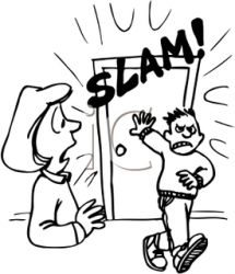 slam - To shut a door, window, or lid forcefully and loudly