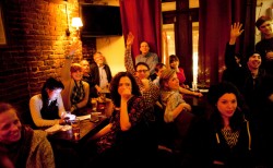 festoon - To decorate a place for a special occasion by hanging lights, colored paper, balloons, flowers, etc.