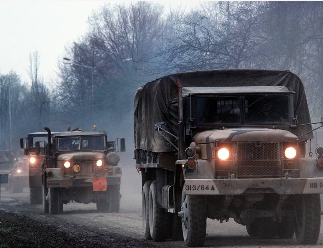 convoy - A group of vehicles travelling together, usually for military purposes.