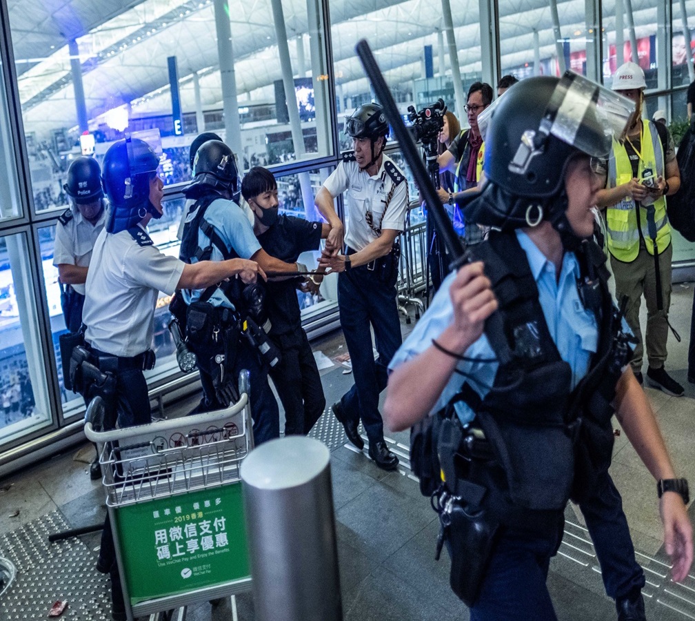restrain - To physically or metaphorically prevent someone or something from moving, acting, or progressing.