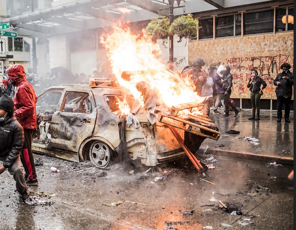 crash - To hit something with force, causing damage and a loud noise.