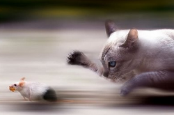 pounce - When an animal or bird of prey jumps or swoops suddenly to catch prey