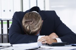 slump - Sit, lean, or fall heavily and limply, especially with a bent back